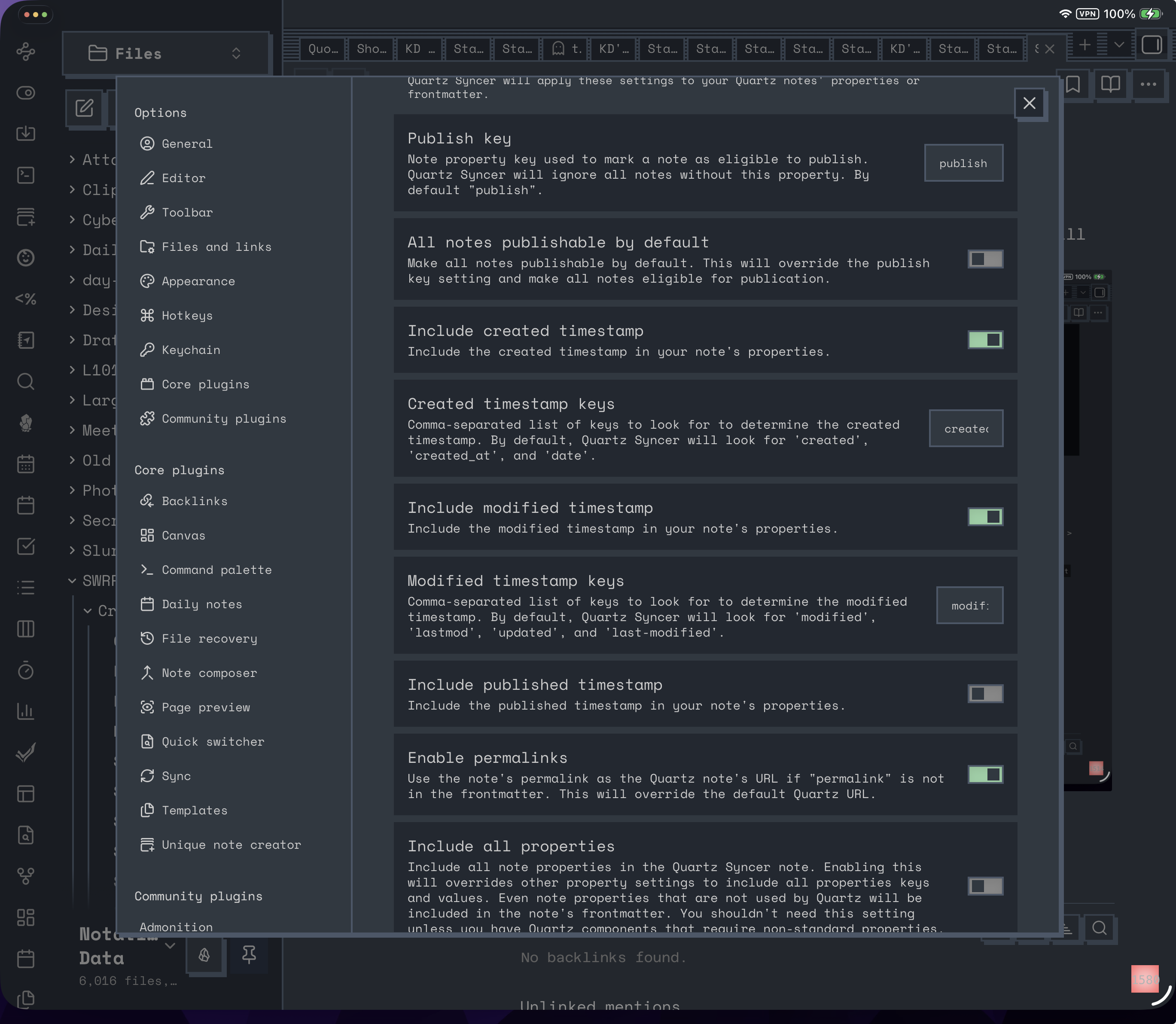 This would be where I recall some parts from the official docs around tweaking quartz.config.ts with domains, comments, setting up themes etc. Some of which is covered in Mostly How I Built This Site but you get what you get.